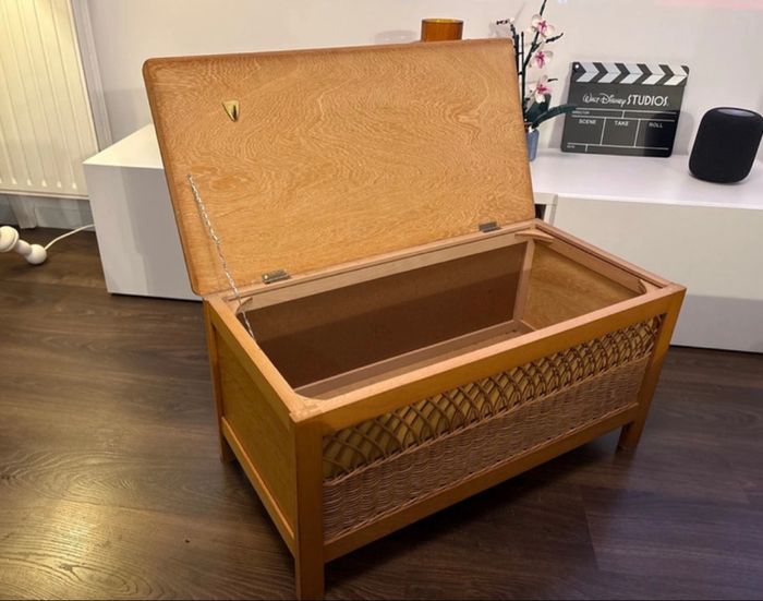 Banc Coffre à jouets en bois et rotin vintage année 60 - bon état  - photo numéro 2