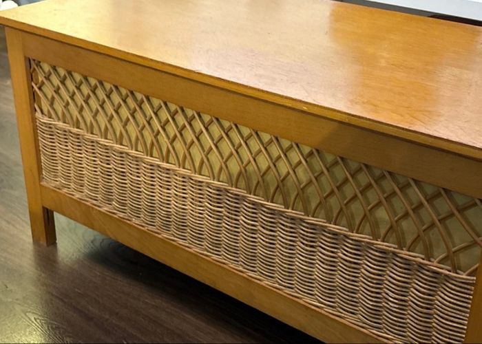 Banc Coffre à jouets en bois et rotin vintage année 60 - bon état  - photo numéro 4