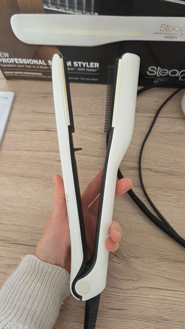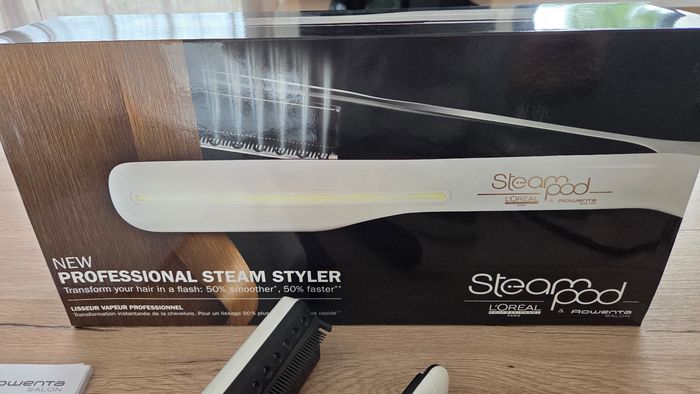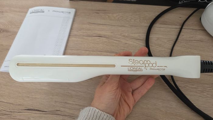 Lisseur Steampod L'oreal professionnel en excellent etat. Seul petit defaut: le blanc a legerement jauni a coté des plaques du a la chaleur (voir photo) Plaques comme neuve Peu utilisé et tjr avec de l'eau demineralisée Vendu dans sa boite d'origine