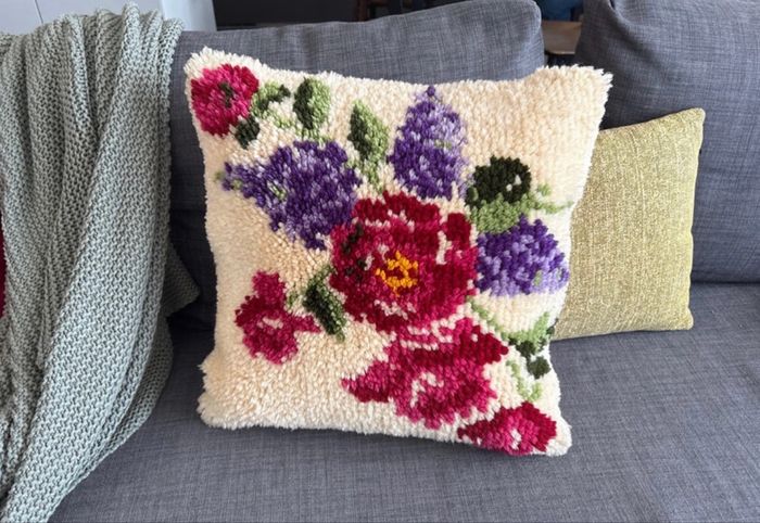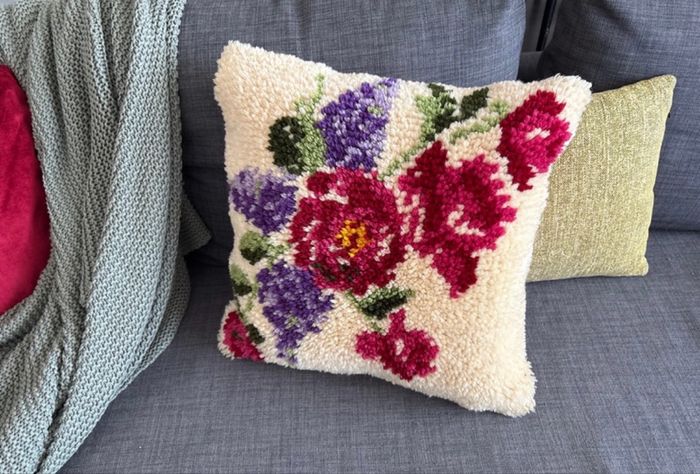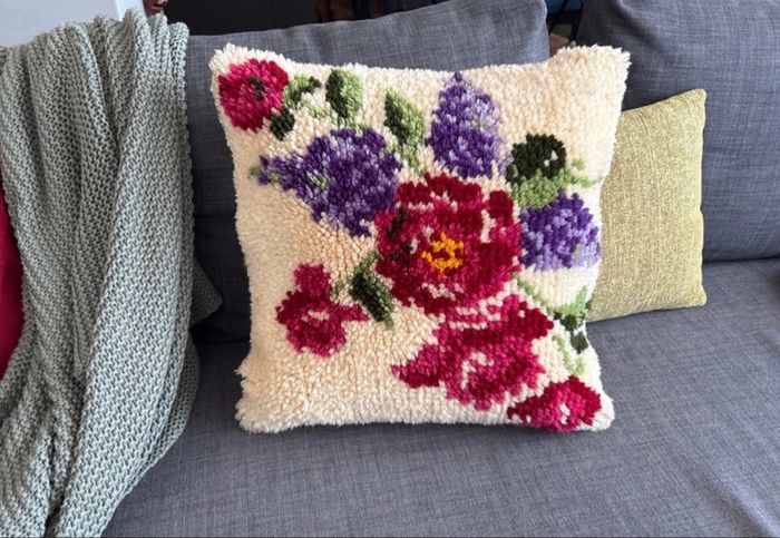 Coussin coloré vintage en laine de point noué - bon état   Dimensions : 45 cm x 45 cm - photo numéro 1