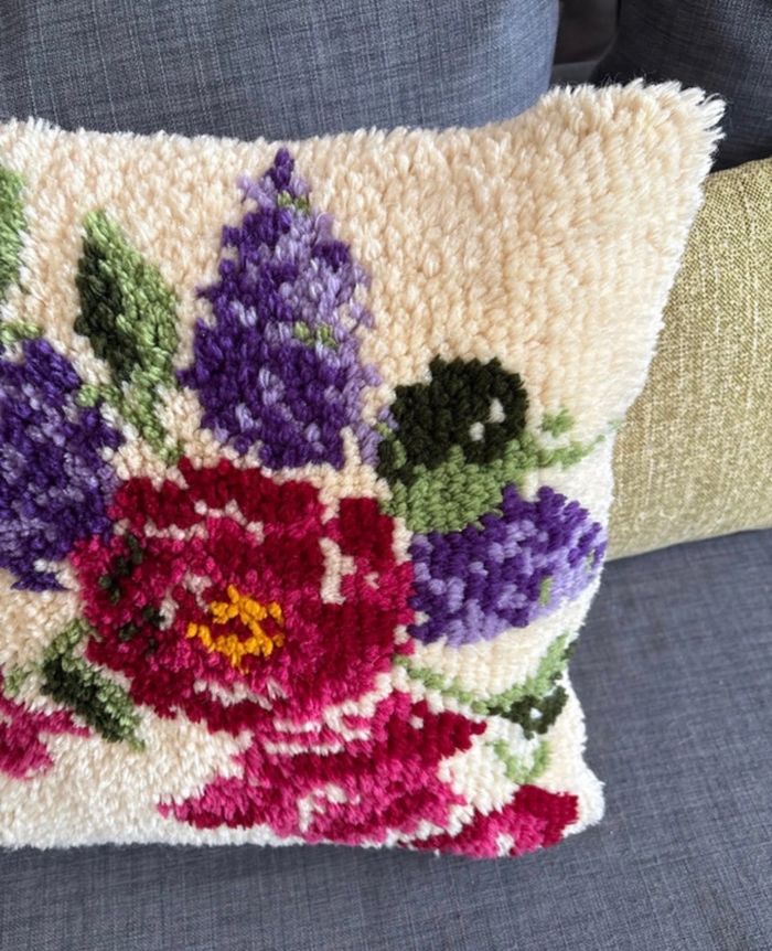 Coussin coloré vintage en laine de point noué - bon état   Dimensions : 45 cm x 45 cm - photo numéro 3