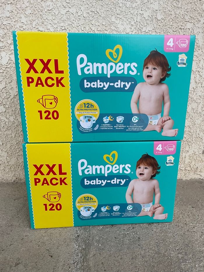 ⚠️ -30% avec le code promo : bientôt dispo ⚠️ 🛍️ Plusieurs lots disponibles dans mon dressing Pampers baby dry Taille 4 (9/14 kg) 📏 2 cartons de 120 couches Total : 240 couches Neuf jamais ouvert Envoi rapide le jour même ________________ Taille disponible dans mon dressing couche : Pampers taille 3 ✅ Pampers taille 4+ Pampers taille 5 Pampers pants Pampers harmonie Pampers premium protection