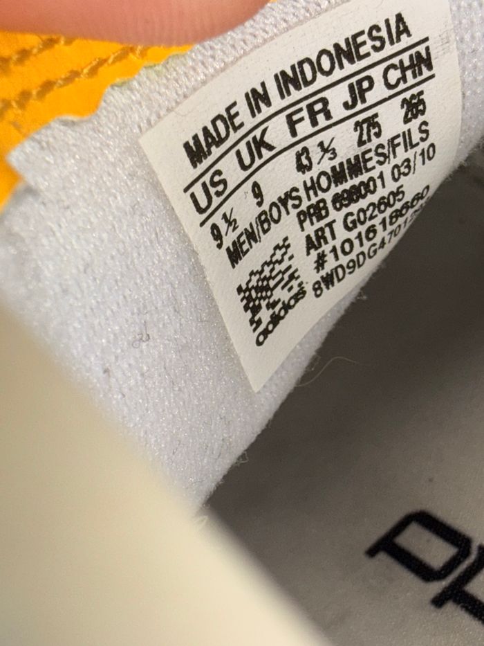 Je vends cette jolie paire de crampons. Rares Adidas Predator couleur blanc / noir / jaune, modèle emblématique des années 2000 ' Une paire culte inspirée des Predator portées par Zidane, Beckham et Gerrard, avec ce design reconnaissable entre mille. Confortables, souples et puissantes, elles offrent encore une excellente tenue de jeu ou feront un superbe ajout à une collection de modèles mythiques Taille : 43 1/3 Fabriquées en Indonésie Crampons moulés Couleur : blanc / noir / jaune Bon état général, quelques traces normales d'usage (voir photos), intérieur propre, semelles en bon état.
