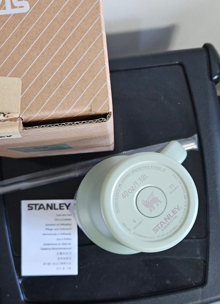 Tasse isotherme Stanley Quencher / Tumbler d’une capacité de 1,18 L, couleur vert kaki. Jamais utilisée, uniquement déballée. Format tasse avec poignée, couvercle adapté aux boissons chaudes comme froides. Conservation efficace de la température sur plusieurs heures. Article complet avec sa boîte, conforme aux photos. Envoi soigné 📦