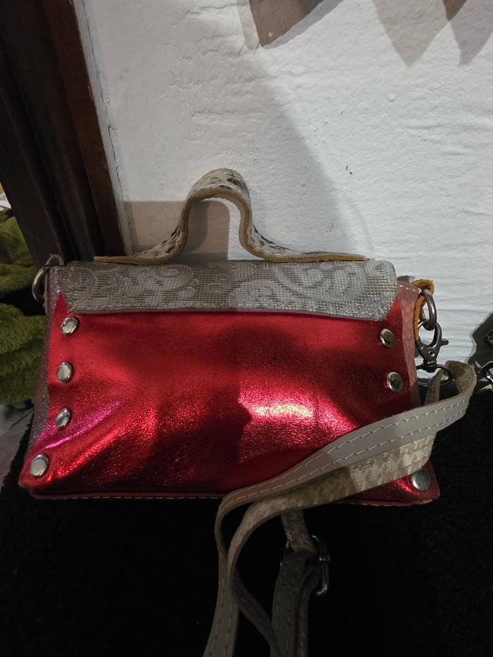 Mini sac à main créer avec différents morceaux de cuir très original avec bandoulière