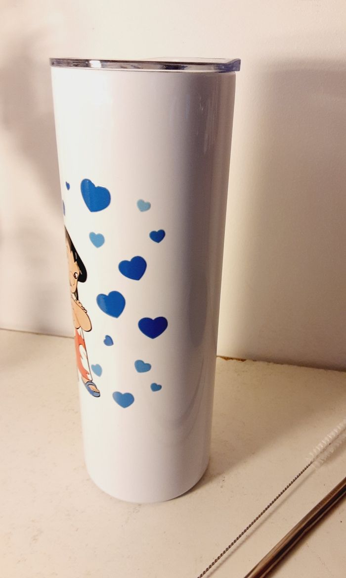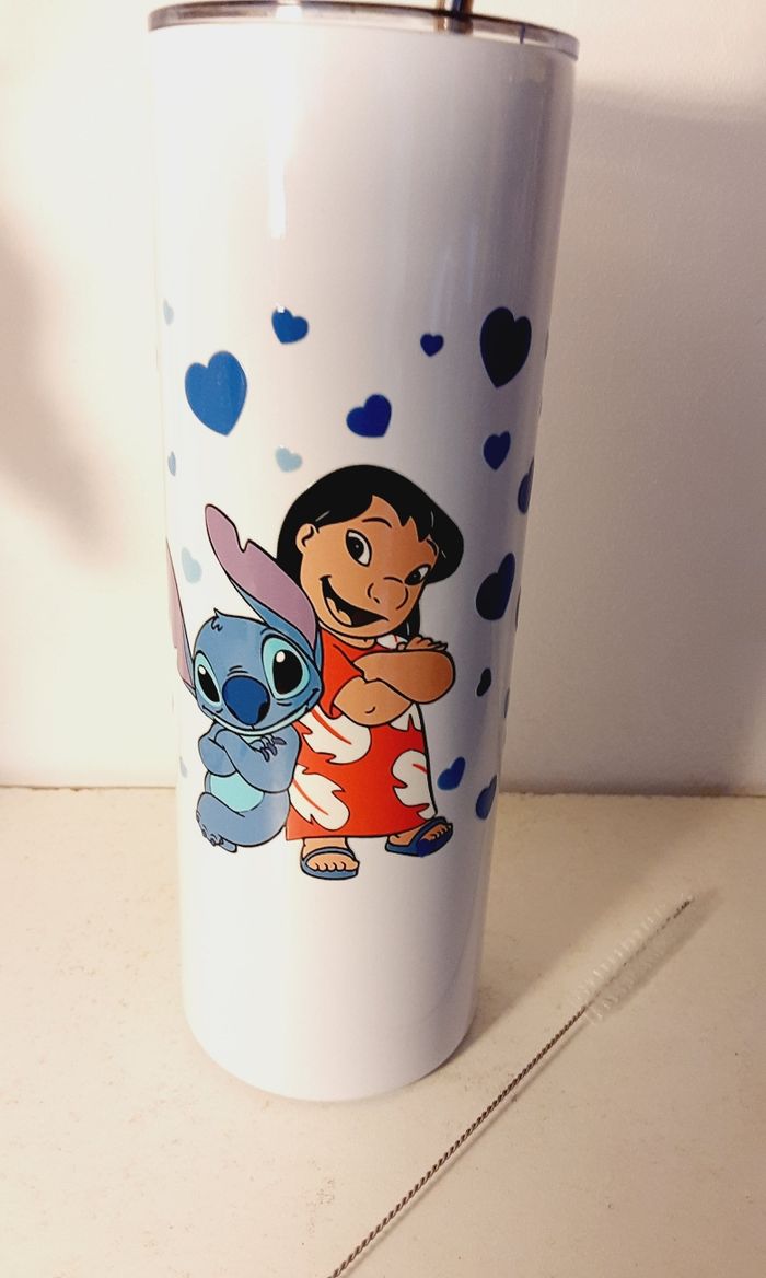 Tumbler  / gobelet  acier inoxydable avec couvercle,  paille et brosse modèle Lilo et Stitch  - photo numéro 1