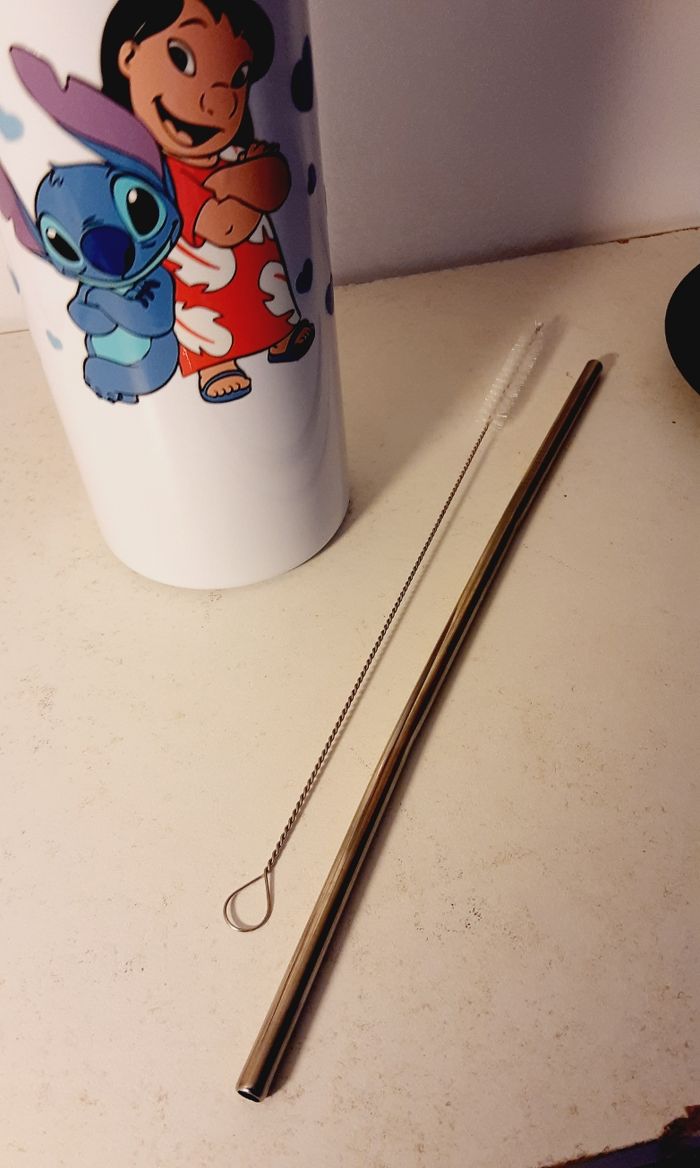 Tumbler  / gobelet  acier inoxydable avec couvercle,  paille et brosse modèle Lilo et Stitch  - photo numéro 7