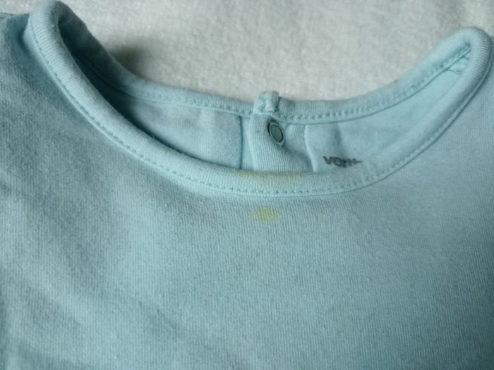 Lot de 6 t-shirts à manches longues (Disney, Gemo, Obaibi), un pantalon Tissaia, une robe Vertbaudet avec body intégré (légère tache au col), une combinaison Vertbaudet et 2 paires de collants fins. Bon voire très bon état, 18 mois (2 t-shirts marqués 2 ans mais qui taillent petit)