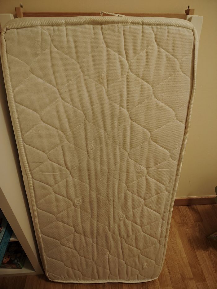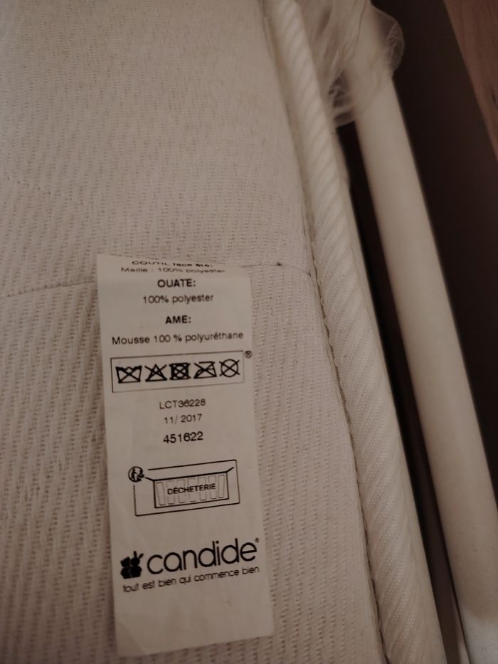 Lit bébé de la marque Sauthon, taille 60* 120 cm Vendu avec un matelas de la marque Candide, taille 60* 120cm Le tout est en bon état (il y a juste des marques sur l'une des barrièreq du lit, voir photo, mais qui peut se repeindre et n'empêche pas l'utilisation) Déjà démonté