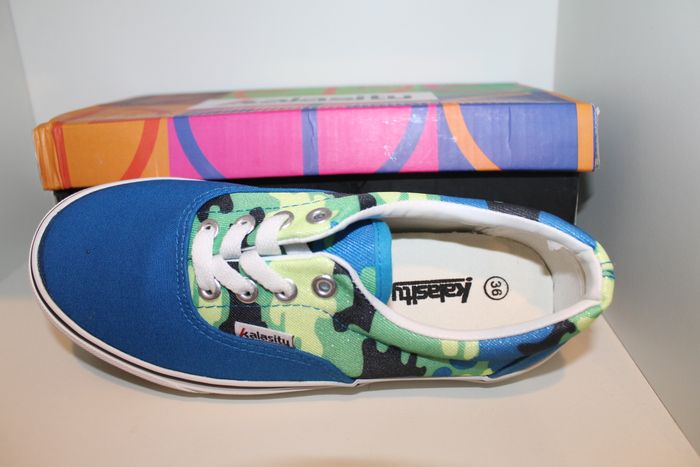 baskets basse bleu et vert pointure 36 neuves dans boite,model ado ou homme.Marque kalasity réf 1258 n'hésitez pas à faire un lot.
