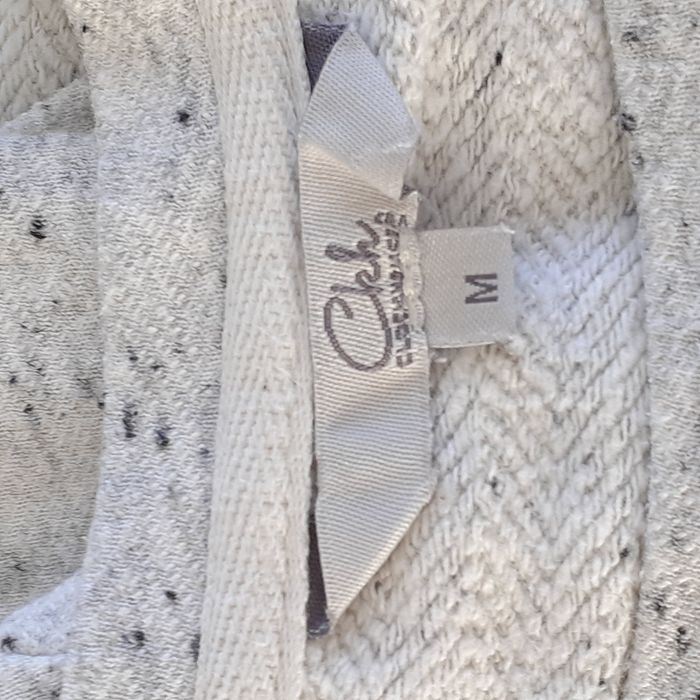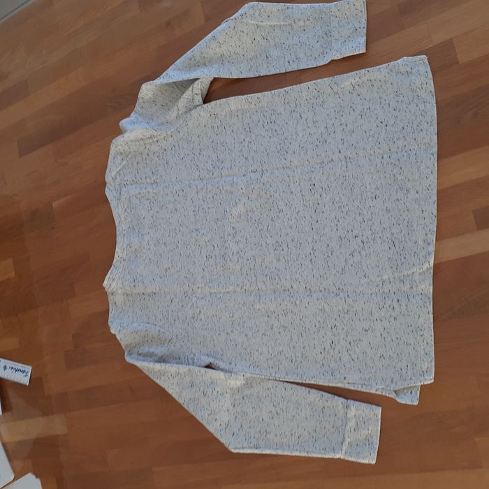 Sweat shirt gris clair moucheté de plus foncé avec un beau dessin sur le devant, légères ouvertures sur le bas des côtés et dos légèrement plus long que le devant donnant une belle allure.