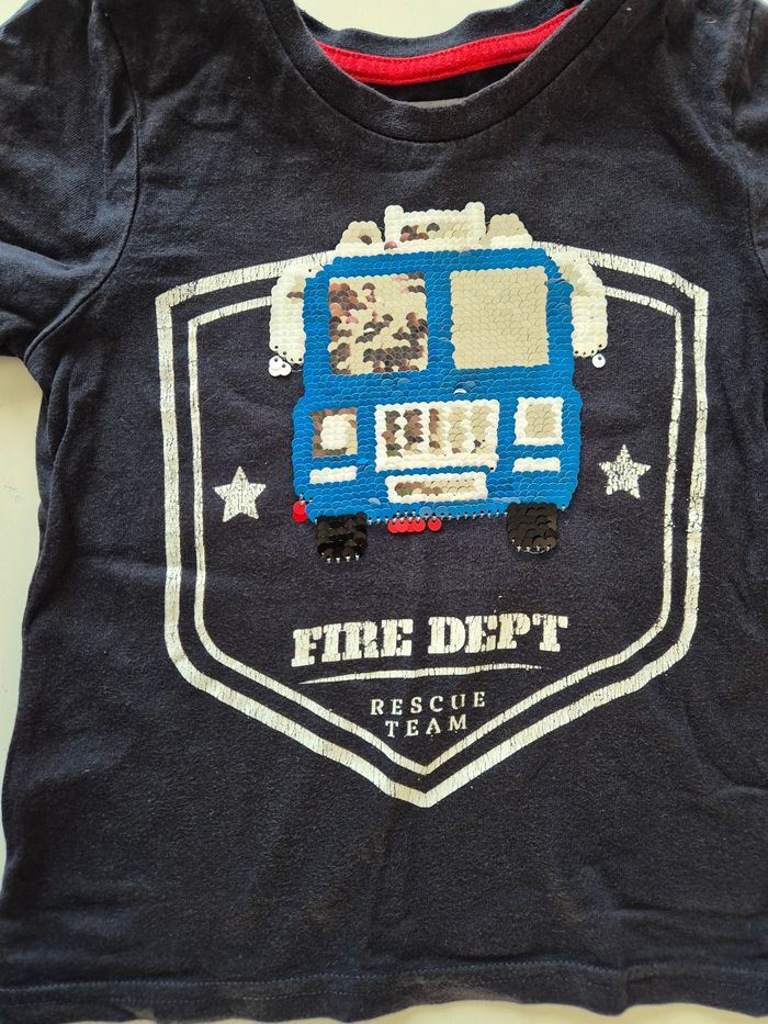 👦 T-shirt manches courtes à sequin Taille : 4 ans / 104 cm Marque : C&A Thème : Pompier 🚒
