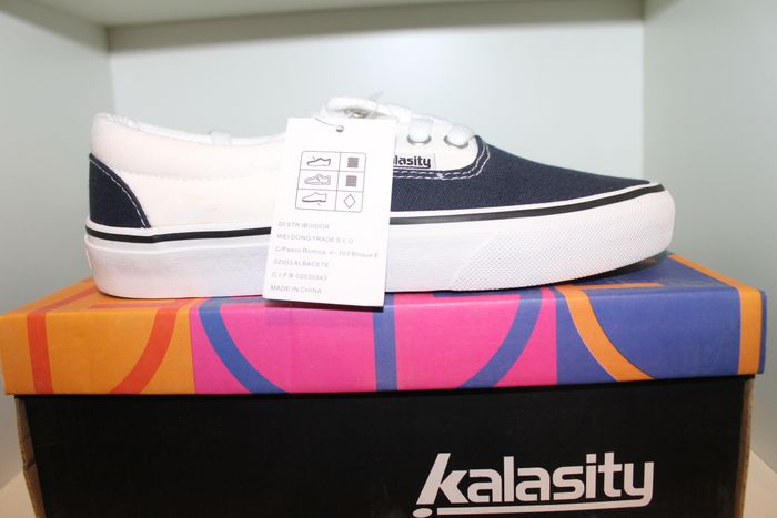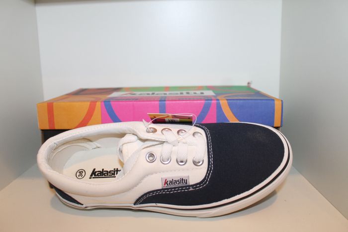 baskets basse blanche et bleue pointure 36 neuves dans boite genre vans,model ado ou homme.Marque kalasity. réf 1259 n'hésitez pas à faire un lot.