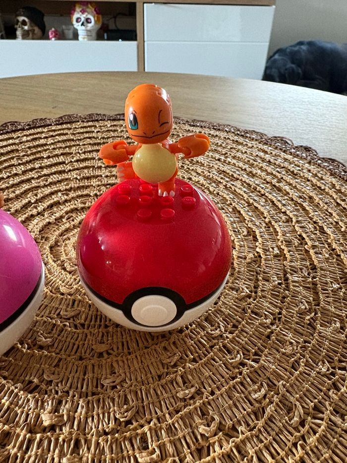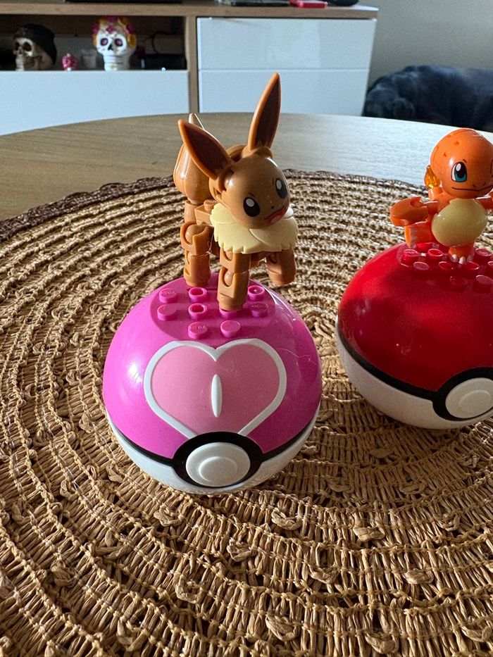 2 pokemons type lego Salameche et evoli avec leurs pokeball Neuf juste monté