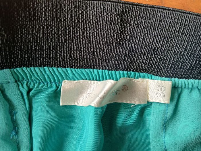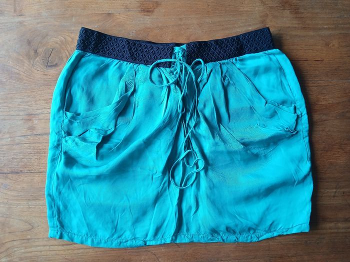 Jupe verte de la marque See U Soon. Taille elastique noire a petits motifs. Taille 38 Très bon état