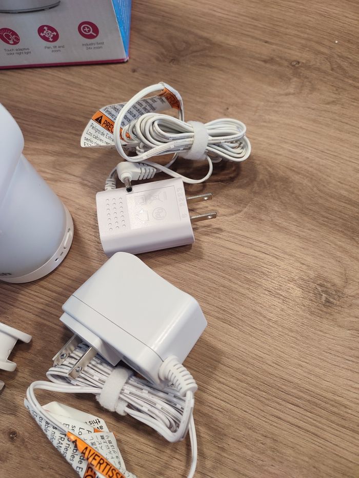 Prix neuf 200 euros, fiche anglaise. Écran LCD couleur de 5 pouces Observez clairement le moindre mouvement depuis l’écran de 5 pouces de l’unité parents. Lorsque vous venez voir votre bébé, vous aurez l’impression de n’avoir jamais quitté la chambre. Accés gratuit en diffusion directe à distance par le téléphone et la tablette Écoutez, répondez et regardez votre enfant à distance sur plusieurs appareils, même à l’extérieur de la maison. Veilleuse couleur adaptative tactile La veilleuse à 7 couleurs ajuste automatiquement la luminosité pour un éclairage idéal. Touchez l’icône de la lumière pour commander la veilleuse. Capteur vidéo CMOS 2K avec zoom 24X Profitez de la meilleure expérience de zoom du secteur avec un zoom de 30 fois sur l’application mobile ou de 24 fois à partir de la visionneuse. Panoramique, inclinaison et zoom à 360 degrés de la caméra à partir de l’unité parent ou à distance Visualisez les pièces de haut en bas grâce à l’angle d’inclinaison verticale de 110 degrés et d’un côté à l’autre grâce à l’angle de déplacement horizontal de 360 degrés. Sons apaisants et berceuses Comprend 2 berceuses apaisantes et 2 sons naturels Caractéristiques : Jusqu’ à 12 heures de diffusion vidéo Vision ultra grand-angle jusqu’ à 135 degrés Communication bidirectionnelle locale ou à distance Vidéo de haute definition 1080p Capteur de température