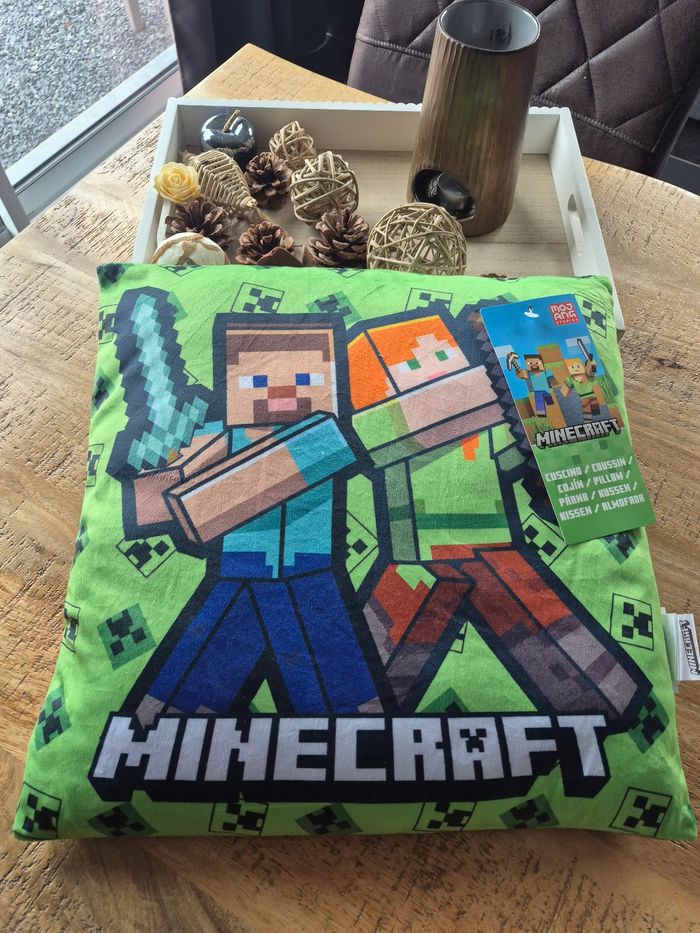 🪔 Oreiller Minecraft 📏 38x38 💠 100% Polyester 🏷 Etat neuf avec étiquette 🚚 Envoi Rapide et Soigné