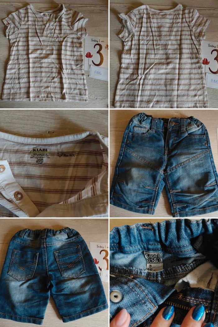 Vendu en lot, le lot contient un gilet, une veste chaude, un short et un ensemble short et tshirt. Réductions activées sur les lots ☺️