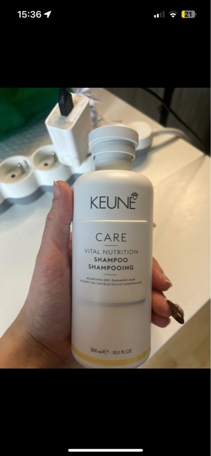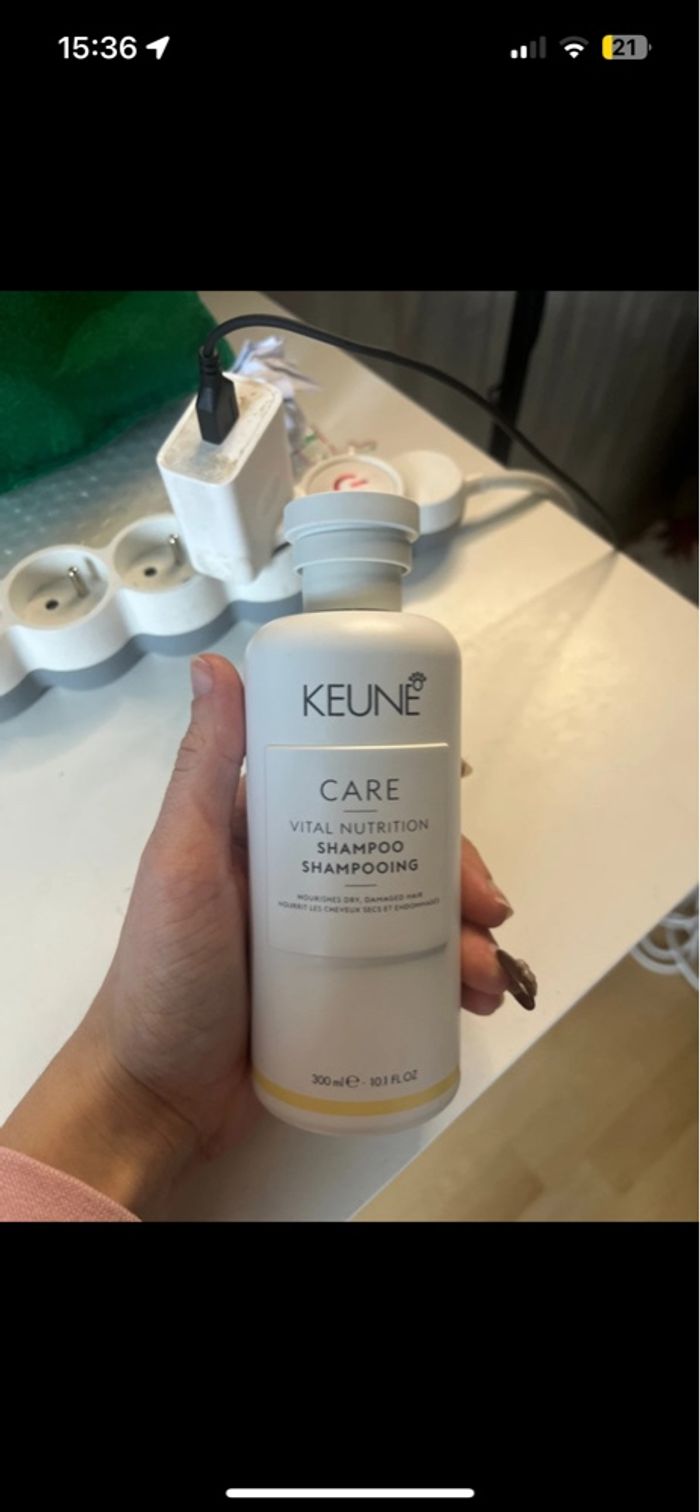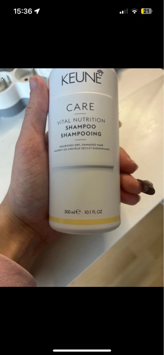 Shampooing de la marque professionnelle « Keune HairCosmetics » Gamme « Care - Vital Nutrition » : nourrissant, spécial cheveux secs, abîmés et endommagés 300ml NEUF JAMAIS OUVERT Shampooing encore en vente au prix de 24,45€ sur leur site !