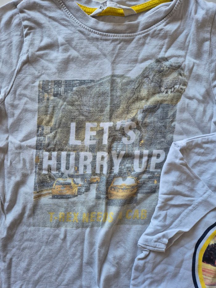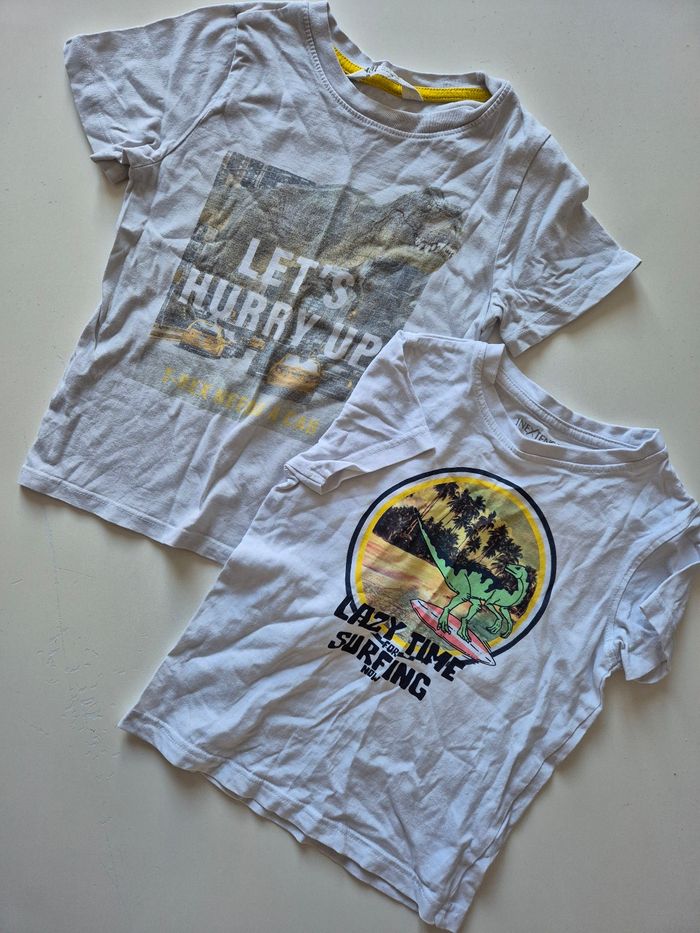 👦 T-shirt manches courtes × 2 Taille : 2-4 ans / 98-104 cm Marque : H&M / In extenso Thème : Dinosaure 🦕