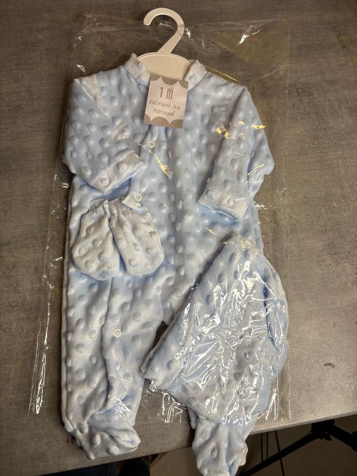 Coffret comprenant 1 pyjama, 1 bonnet et des moufles 4 coloris disponibles Totalement personnalisable avec images et texte