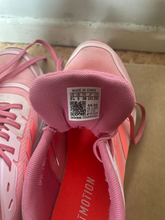 Baskets Adidas roses taille 38, légères et confortables. Très bon état, semelles peu usées. Idéales sport ou quotidien. 👟✨ #adidas #baskets #chaussures #sport #running
