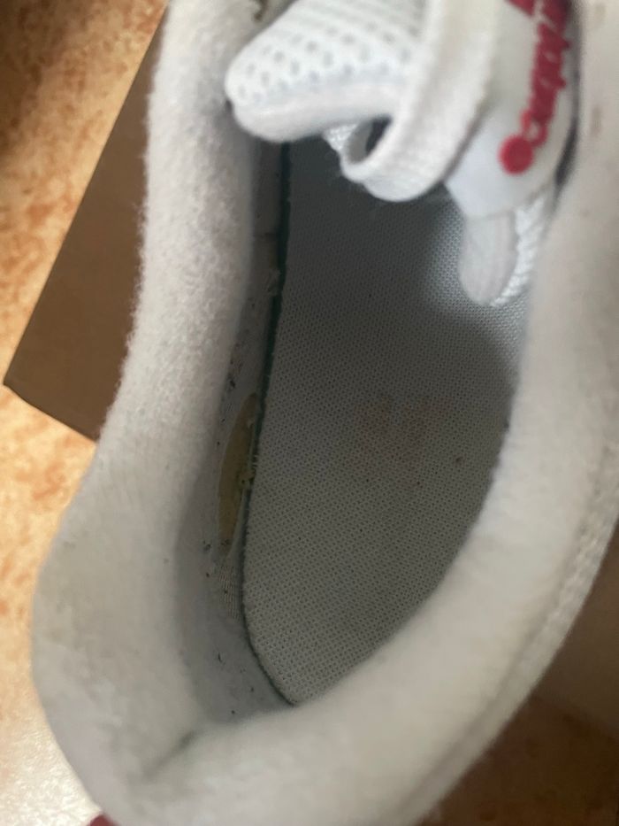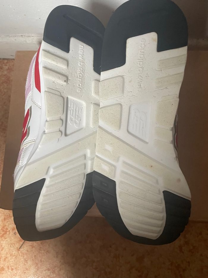 Baskets New Balance enfant, coloris blanc avec détails rose et rouge. 👟 Taille : 40,5 EU (UK 7 / US 7) 📦 État : bon état général Semelles très peu usées, extérieur propre et bien conservé. À noter : intérieur légèrement usé avec quelques traces, visibles sur les photos. Chaussures confortables, idéales pour le quotidien, l’école ou les sorties. 📸 Photos réelles du produit 📦 Envoi rapide et soigné