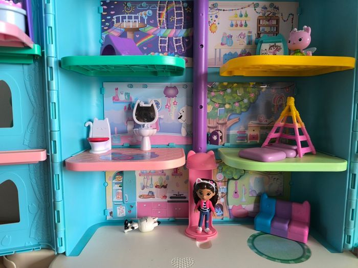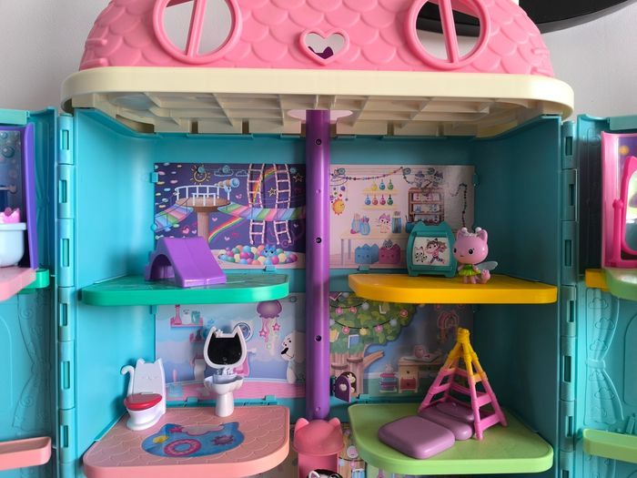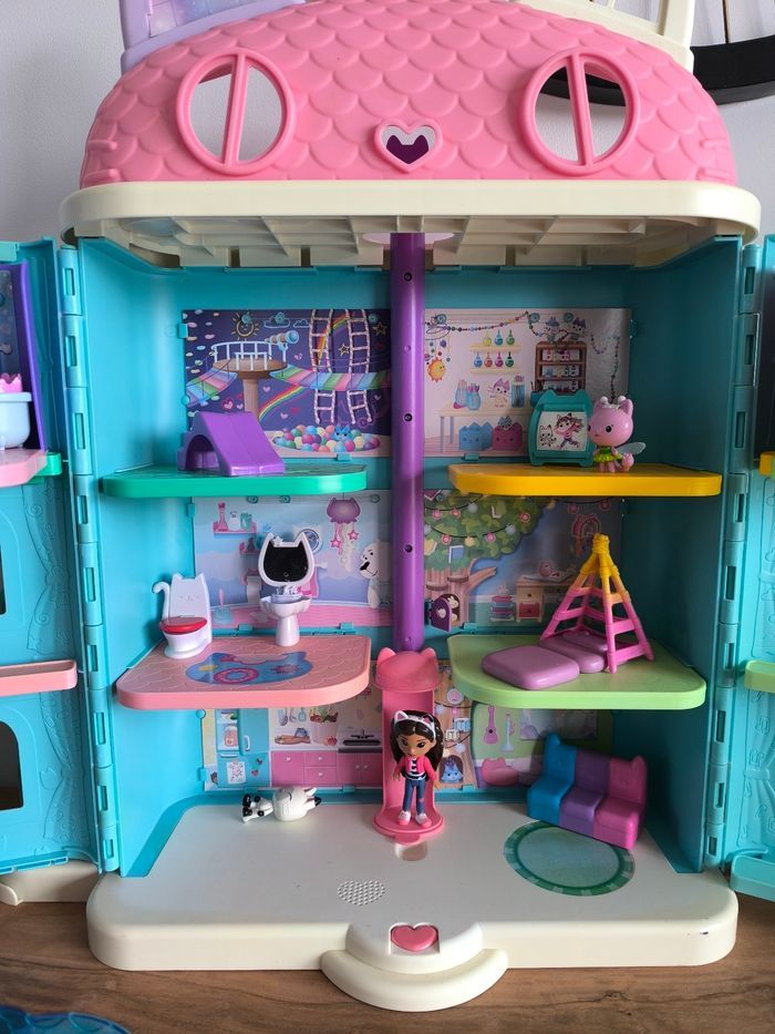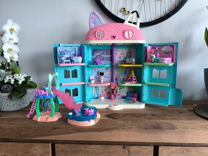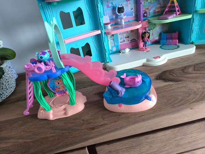 Bonjour je vends une maison gaby chat comprenant 2 pièces supplémentaires avec sa piscine Servie avec quelques légères traces d'usures mais encore en bon état voir très bon état dans l'ensemble