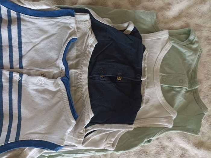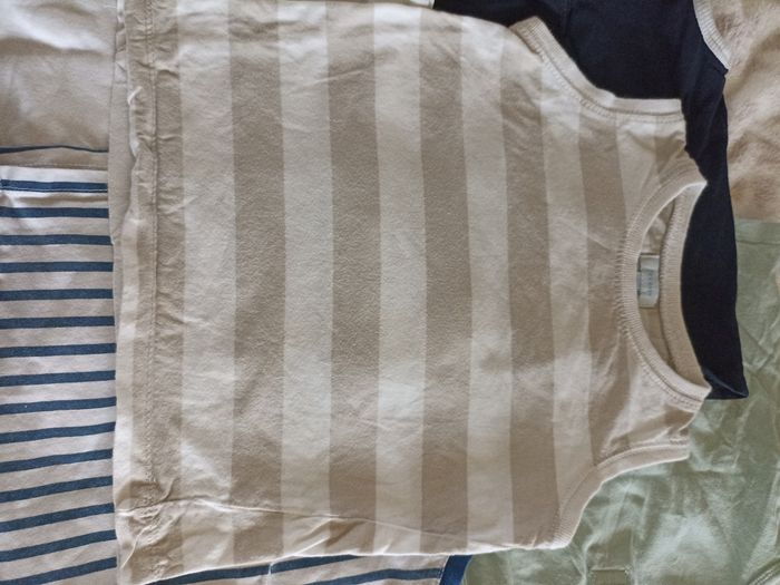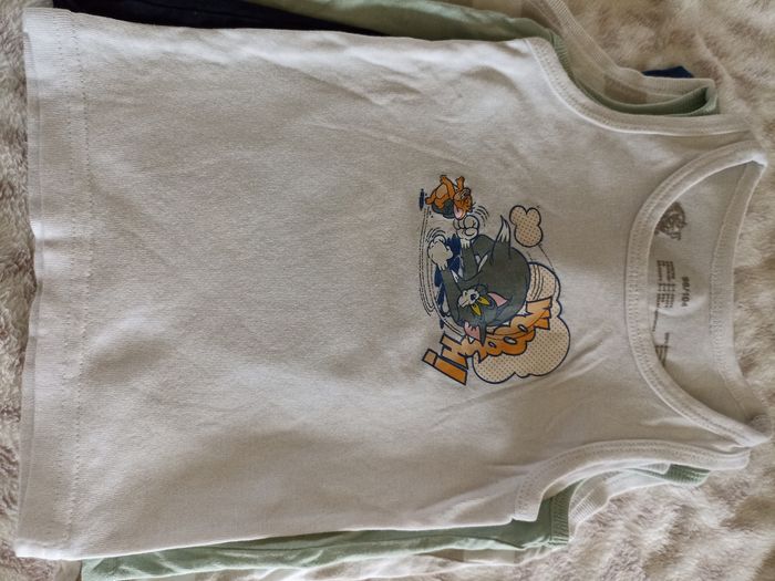 Lot de tee-shirts à bretelles (5). 23/24 mois. Bleu marine, blanc, vert clair. Marque lupilu, Tex Baby, obaibi.
