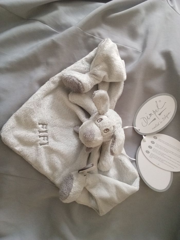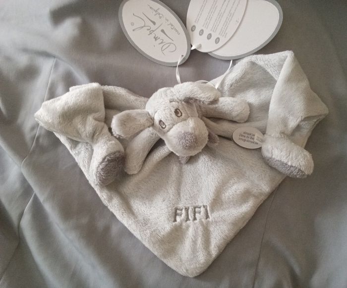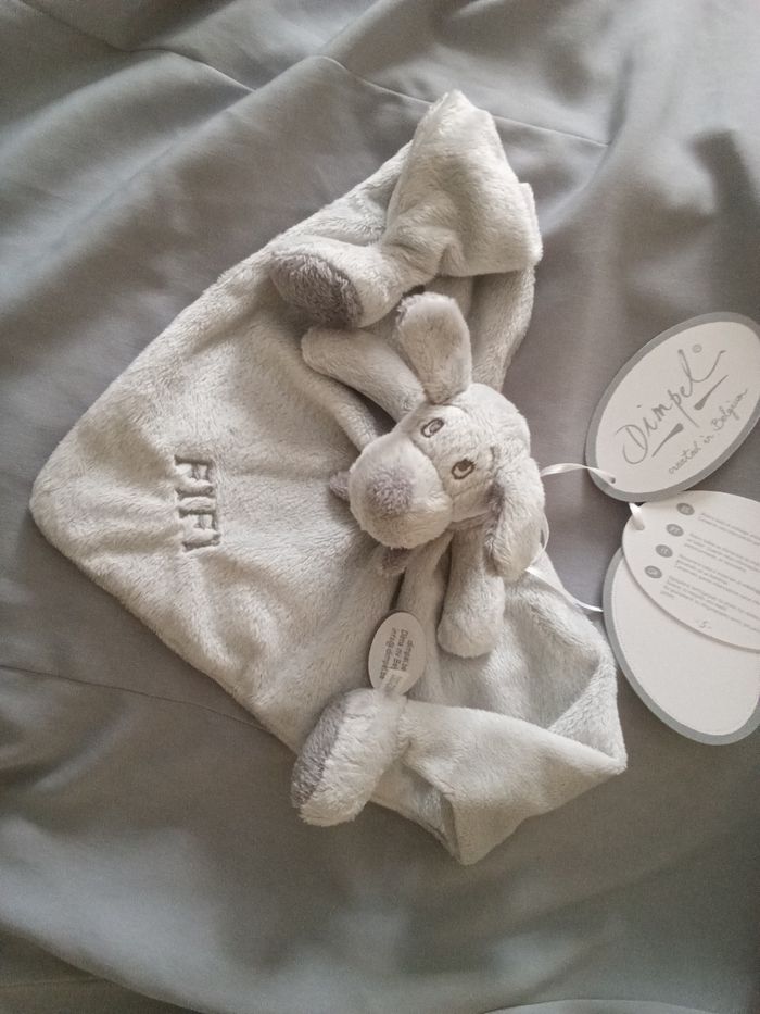 doudou est comme sur la photo Fifi le chien de Dimpel doudou Belge neuf gris tons clair et plus foncé écharpe foulard gris plus foncé 2 pieds plat semi-plat doudou de qualité prix 36€ hors port et prix fixe svp pas d'offre merci je fais les envois rapides tous transporteurs Dimpel 2001 références sur étiquette 811304 et 23CC-2309 knuffel peluche plüschtier boneco de pelucia giocattolo cuddly toy ( envoi de préférence par Mondial Relay si vous pouvez )