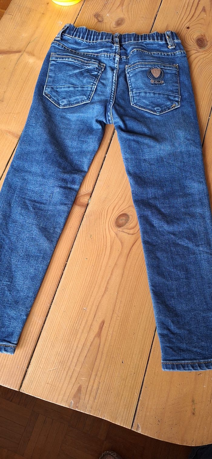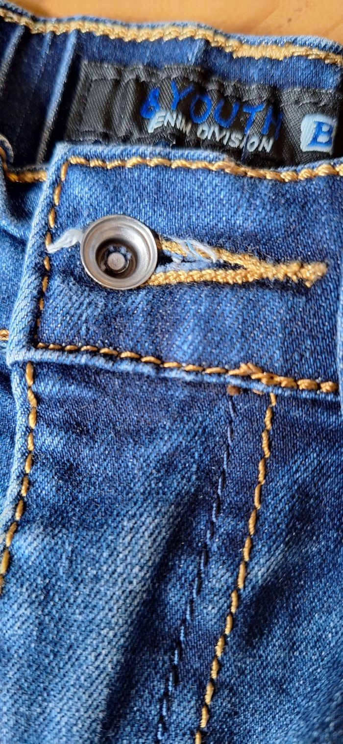 Taille 7-8ans en très bon état, voir dernière photo, bouton déboîté mais le jeans se ferme, pas de trou
