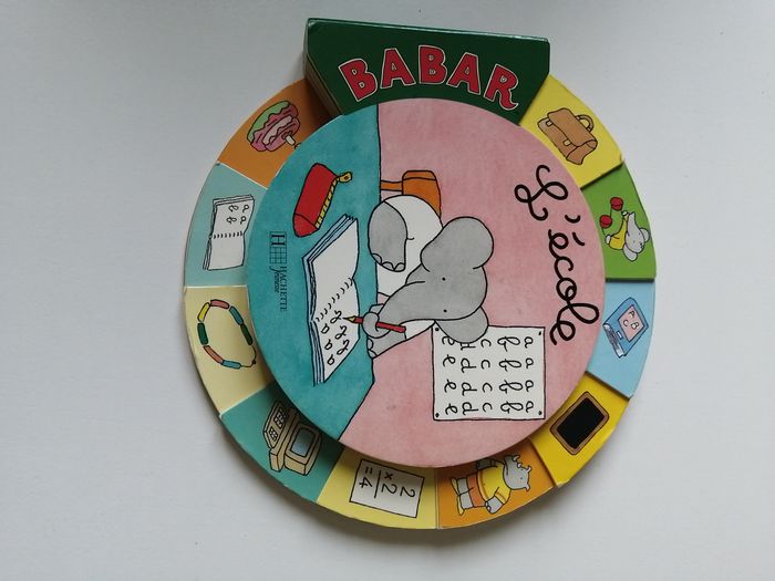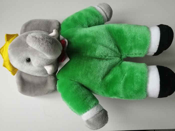 lot peluche + livre le roi babar peluche vintage étiquette présente mais effacée mafi 1988 34 cm toucher velours + livre cartonné l'école hachette jeunesse imagier ludique 2006 3/4 ans