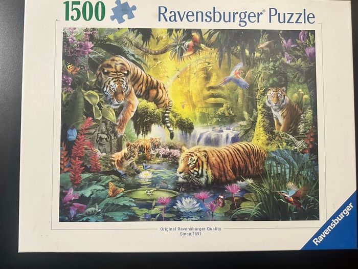 Puzzle 1 500 pièces Tigres dans la jungle Ravensburger magnifique couleur Assez grand format 80x60 cm Très bon état