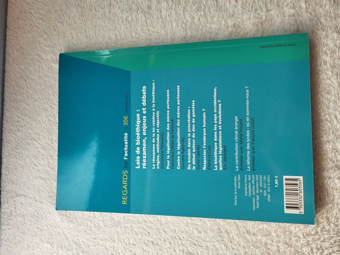 Revue Lois de bioéthique réexamen, enjeux et débats La documentation française - N°356 - Décembre 2009 * D'occasion, défauts et tachés sur la couverture. Marques au crayon à papier sur des pages. ➺ Informations : . Revue en Français