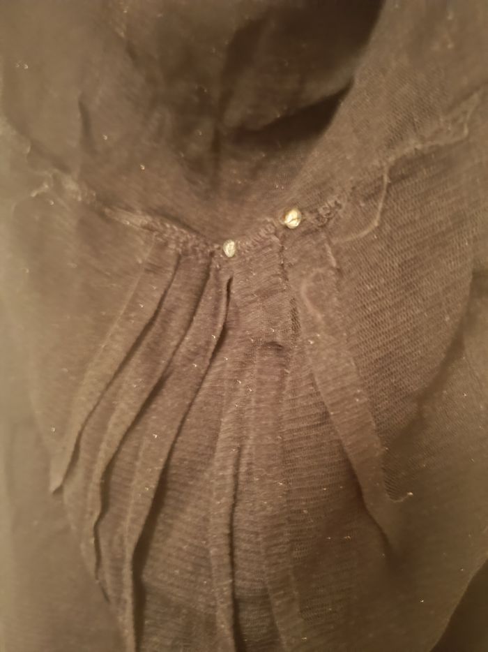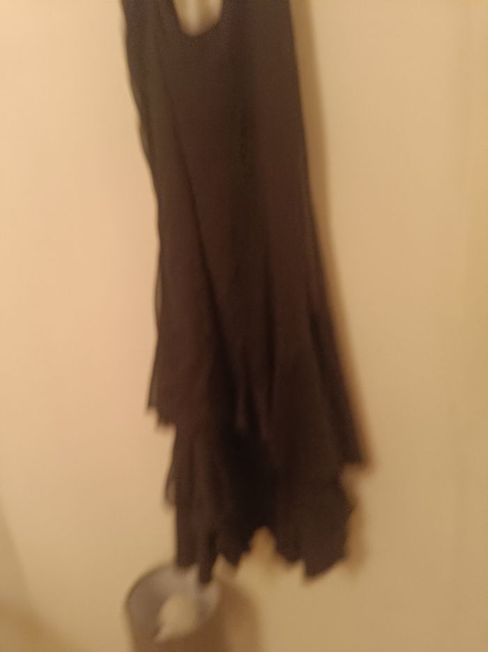 petite robe noire de la marque Cache Cache, taille 36. Coupe fluide avec détails de volants sur le bas. Bon état général (prévoir un petit brossage pour les peluches). Idéale pour une soirée ou une tenue légère d'été.