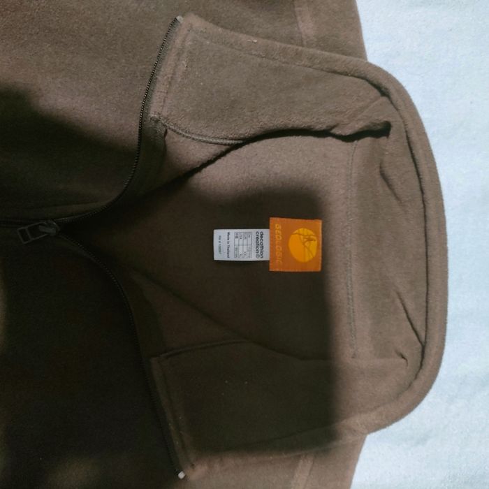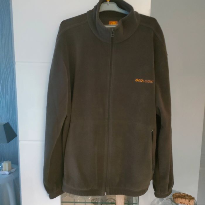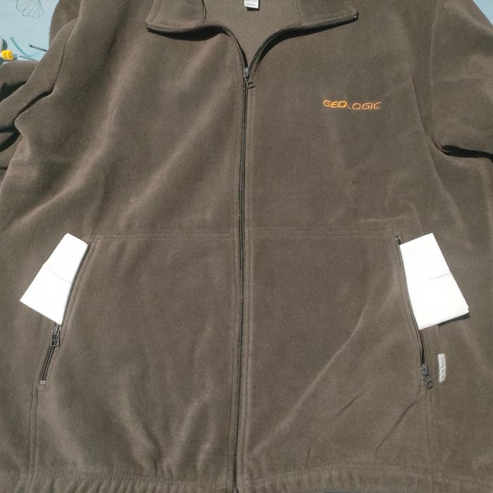 Vend veste polaire unisexe de couleur marron écriture orange. Marque decathlon création Geologic. 100% polyester. Taille 2XL.