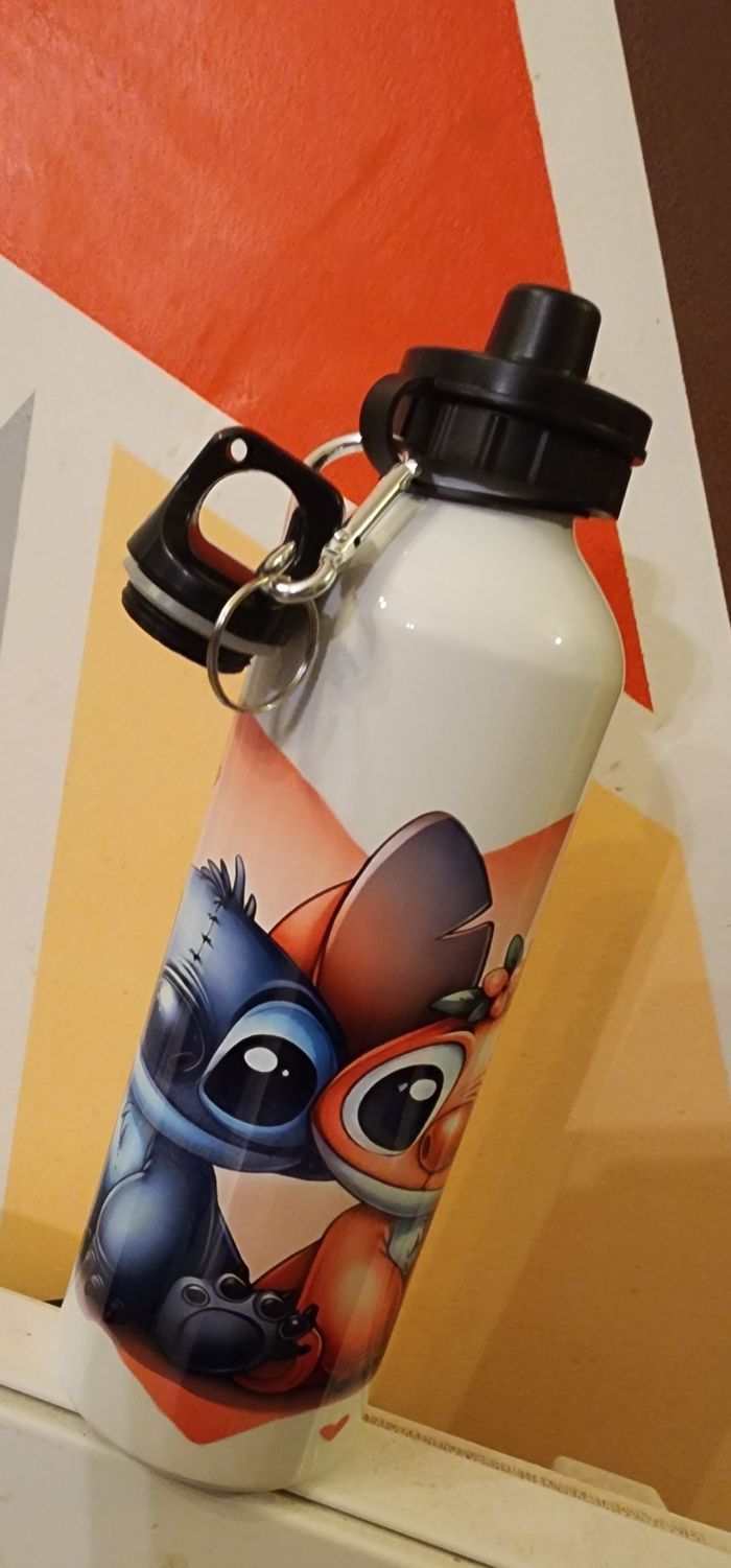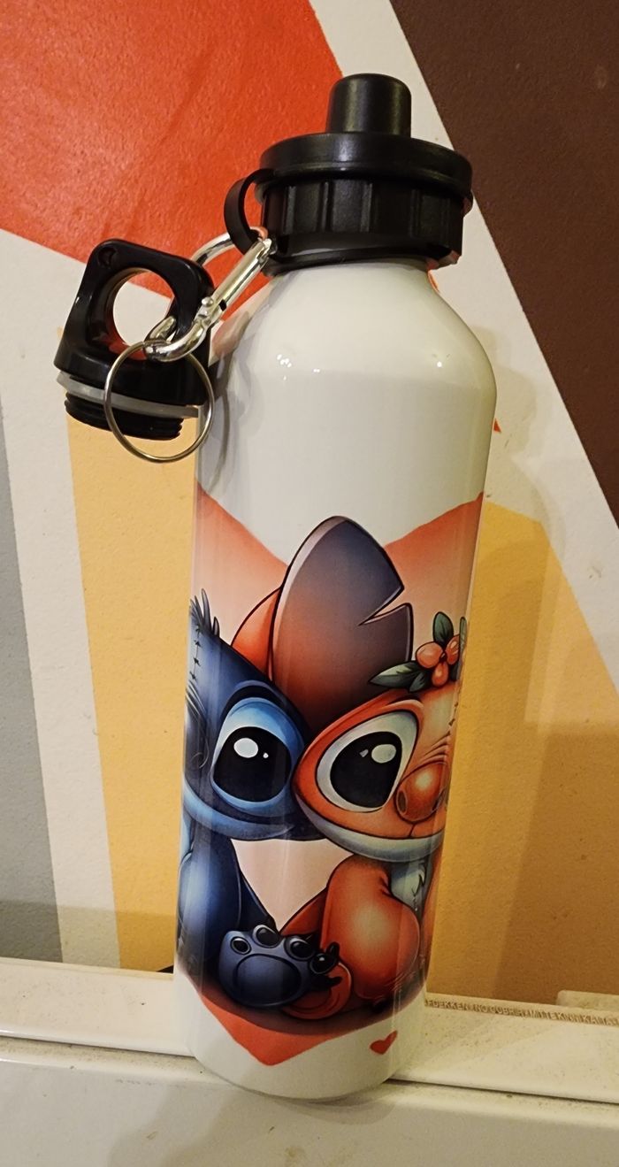 Grande gourde stitch 600ml neuf avec 2 bouchons de rechange.