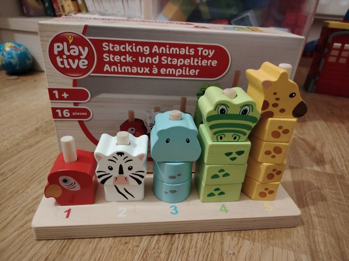 Jeu en bois, animaux à empiler, marque Playtive, dès 1 an, très bon état car très peu utilisé