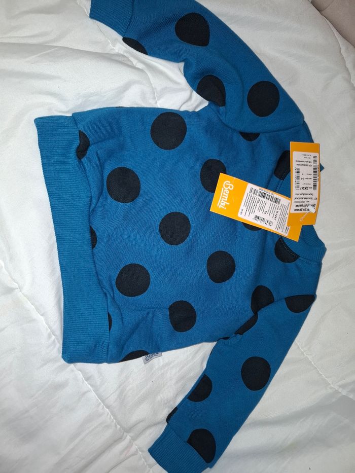 Haut fille bleu avec des rond noir .