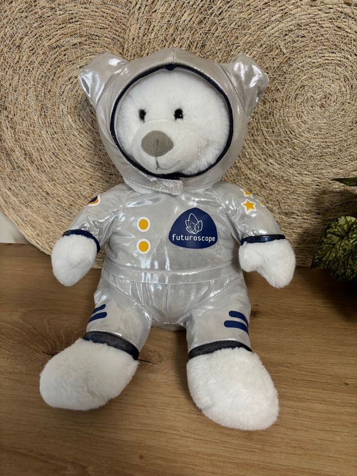 Très bon état 32 cm Envoi rapide #doudouourscosmonautefuturoscope #doudouourscombinaisonargentfuturoscope