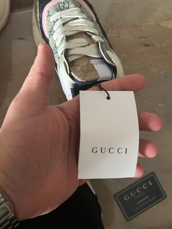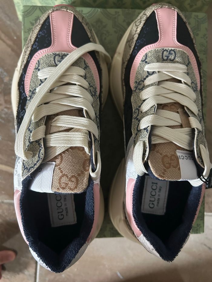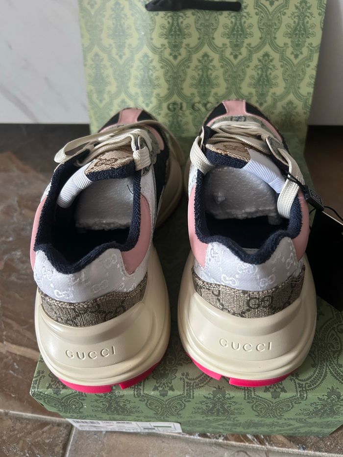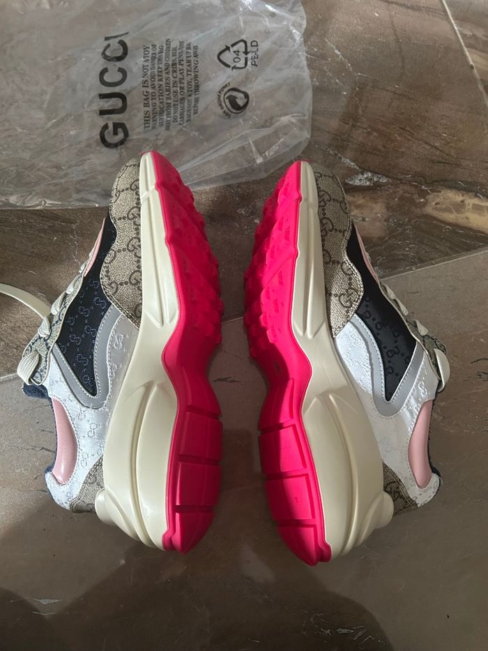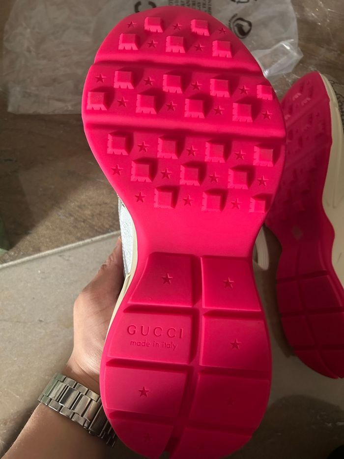 Taille 40 en superbe état jamais porté Gucci rhyton semelle rose Vendu avec sac et boîte