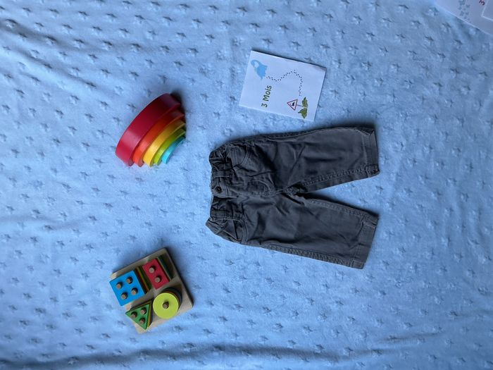 pantalon droit gris taille élastique 3 mois petit pirate - photo numéro 1