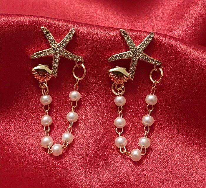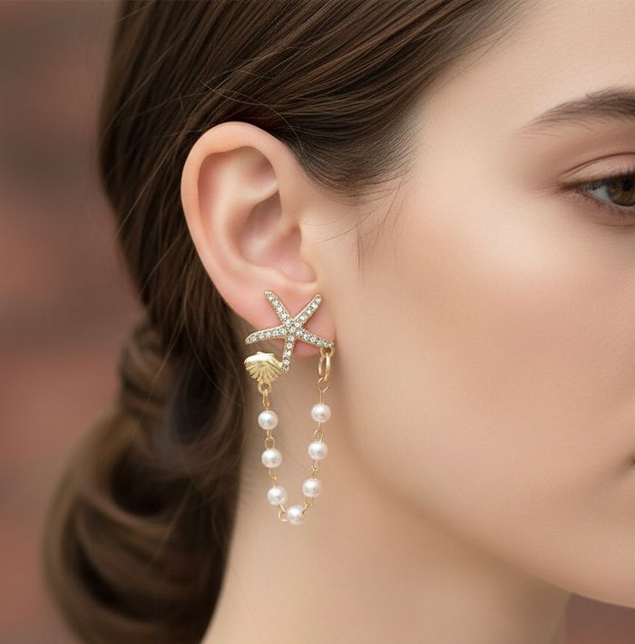 Top bijoux femme boucle d'oreilles coquillage étoile perle vendu avec pochette - photo numéro 1