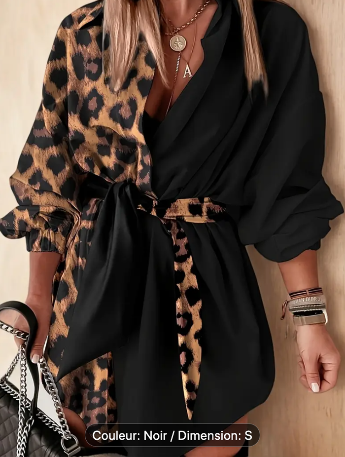 Robe enveloppante imprimée léopard Taille S. - Neuf Robe à imprimé léopard pour femme avec détail de col en V et boutons - 100% Neuf, encore emballé / jamais porté. - Couleur: Noir et marron. - Taille S. - Tour de poitrine : 86-90 cm. Tour de taille : 66-70 cm. Tour de hanches : 91-95 cm. - Élégant, parfait pour toutes les saisons, tenue décontractée ou semi-formelle.