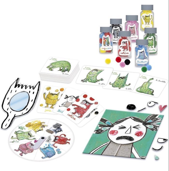 UN COFFRET INNOVANT ET COMPLET pour apprendre à gérer ses émotions et accompagner l'enfant dans son développement personnel. COMMENT JOUER ? Ce coffret propose à l'enfant plusieurs activités originales et amusantes pour découvrir, nommer, faire le tri et accueillir ses émotions : comme le miroir des émotions ou le tableau des magnets mais aussi des jeux calmes avec le yoga du monstre, les cartes découverte ou les flacons des émotions BENEFICES : Une thématique phare de la parentalité positive pour accompagner l'enfant et ses parents au traver de moments de partage pour apprivoiser, décrire et nommer les premières émotions : la colère, la joie, la peur, la tristesse, la fierté, etc LES + PRODUIT : des illustrations originales d'Anna Lienas, l'auteure du bestseller ""La couleur des émotions"". Toutes les activités ont été soigneusement préparées pour accompagner les enfants mais aussi les parents dans la gestion de leurs émotions. Un guide complet accompagne ce coffret pour expliquer chaque activité aux parents. CONTENU : 14 grandes cartes découvertes (11 x 16,5 cm), 1 roue des émotions avec flèche tournante, 1 miroire, 7 flacons avec étiquettes à coller et 120 pompons (20 de chaque couleur), 1 tableau magnétique et 33 magnets, 10 grandes cartes Yoga, 1 guide