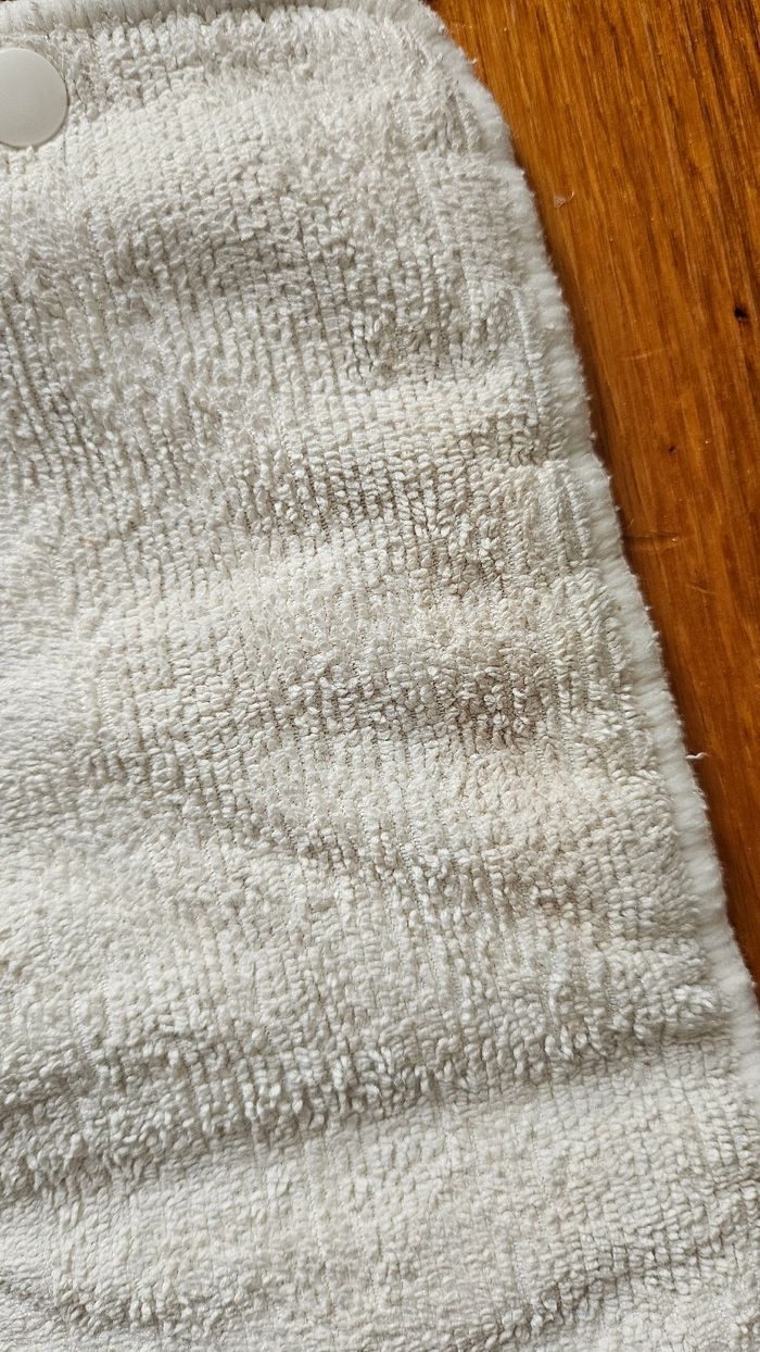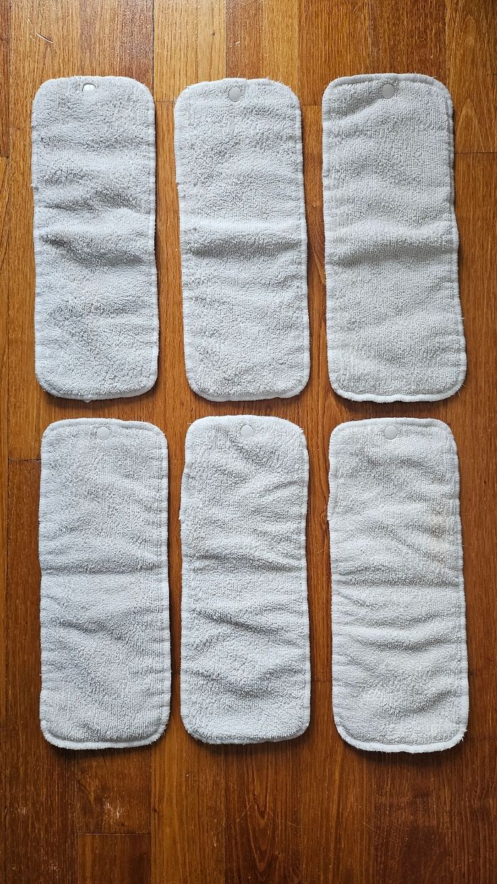 100% éponge microfibre Certains présentent de légères tâches (cf photos) Peuvent se clipser sur les doublures B'bies grâce aux boutons pression (couches et doublures en vente dans mon dressing)