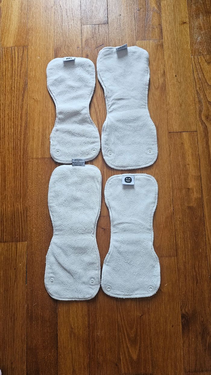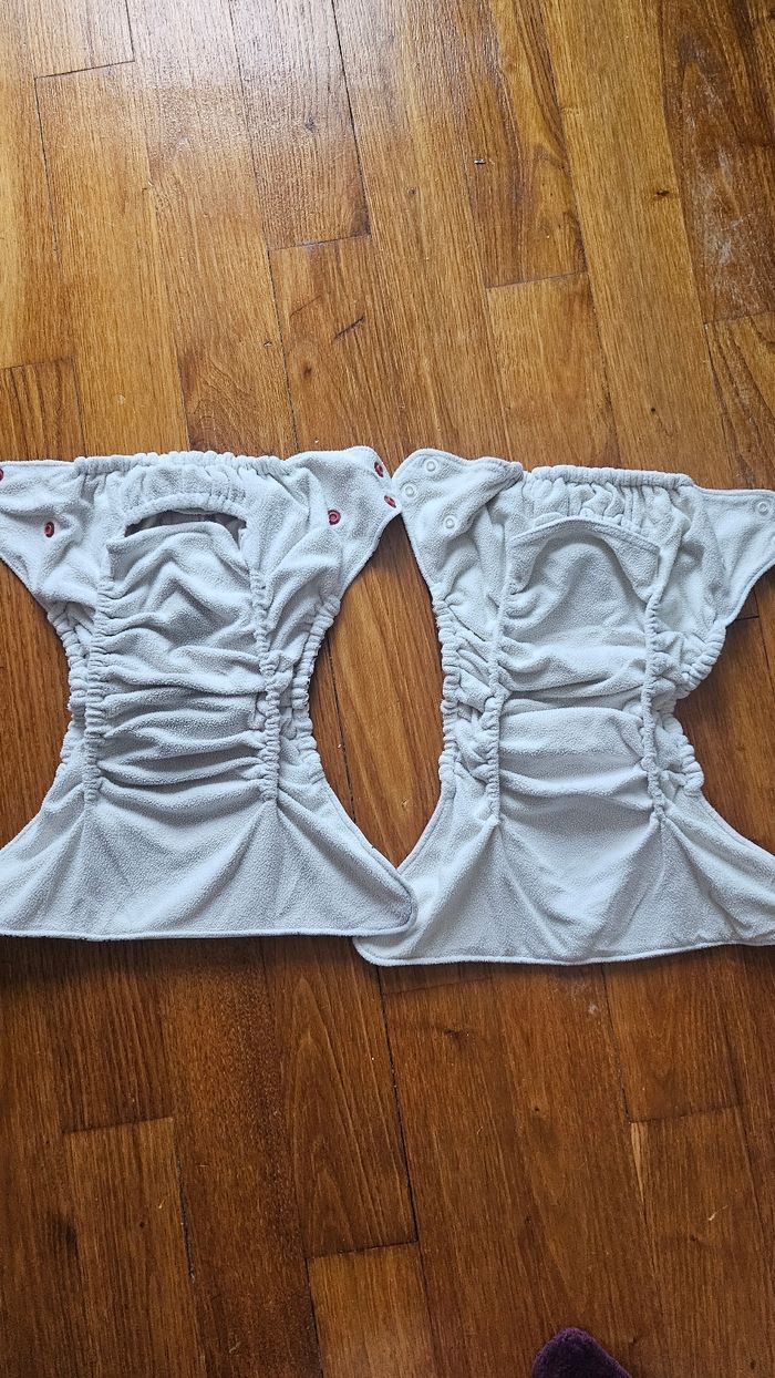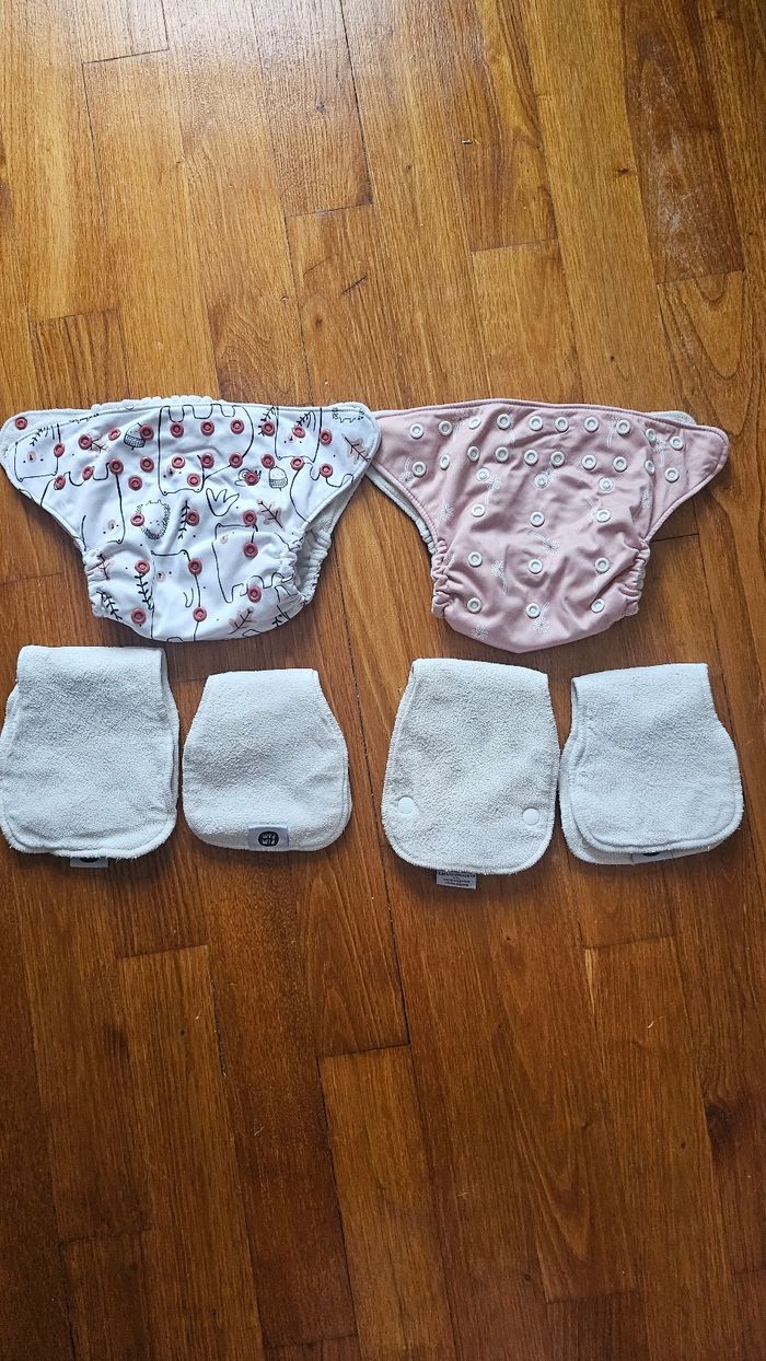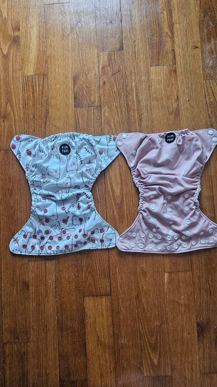 Parfait état Marque PimPam Lot de 2 couches te1 à poche vendues avec 4 inserts (2 petits et 2 grands) en microfibre de bambou qui peuvent s'ajouter à l'aide de pressions. Couches évolutives grâce aux multiples pressions devant de 3,5kgs à 15kgs environ