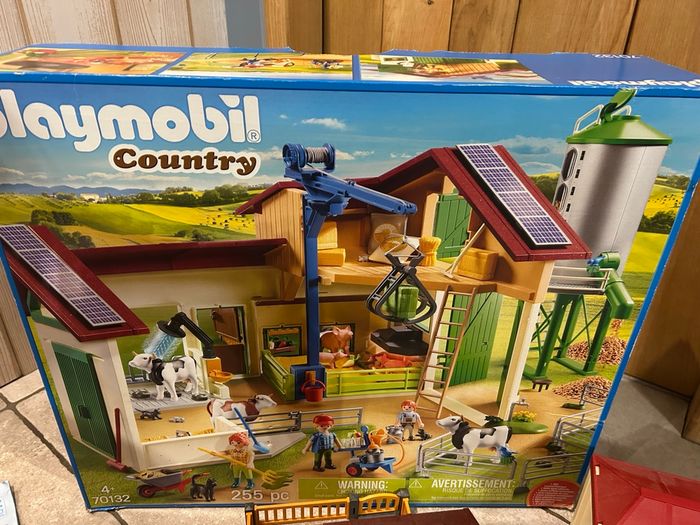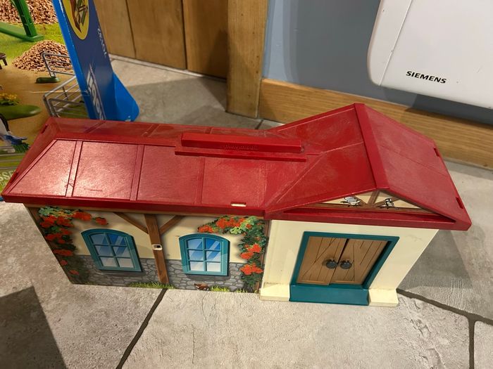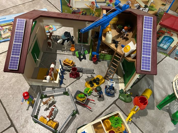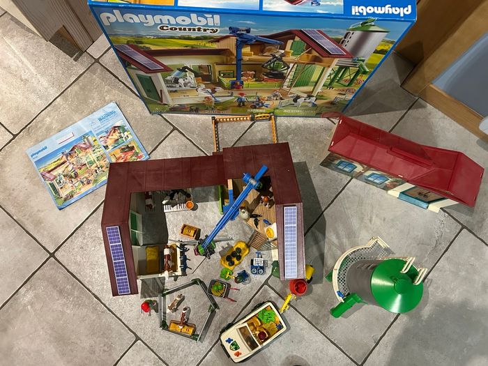 État correct, manque quelques petites pièces mais l ossature est complète . Manque une fixation du silo , les branchements traite, les granulés. En plus une voiture , la bétonnière, la petite ferme transportable ( vide ) .