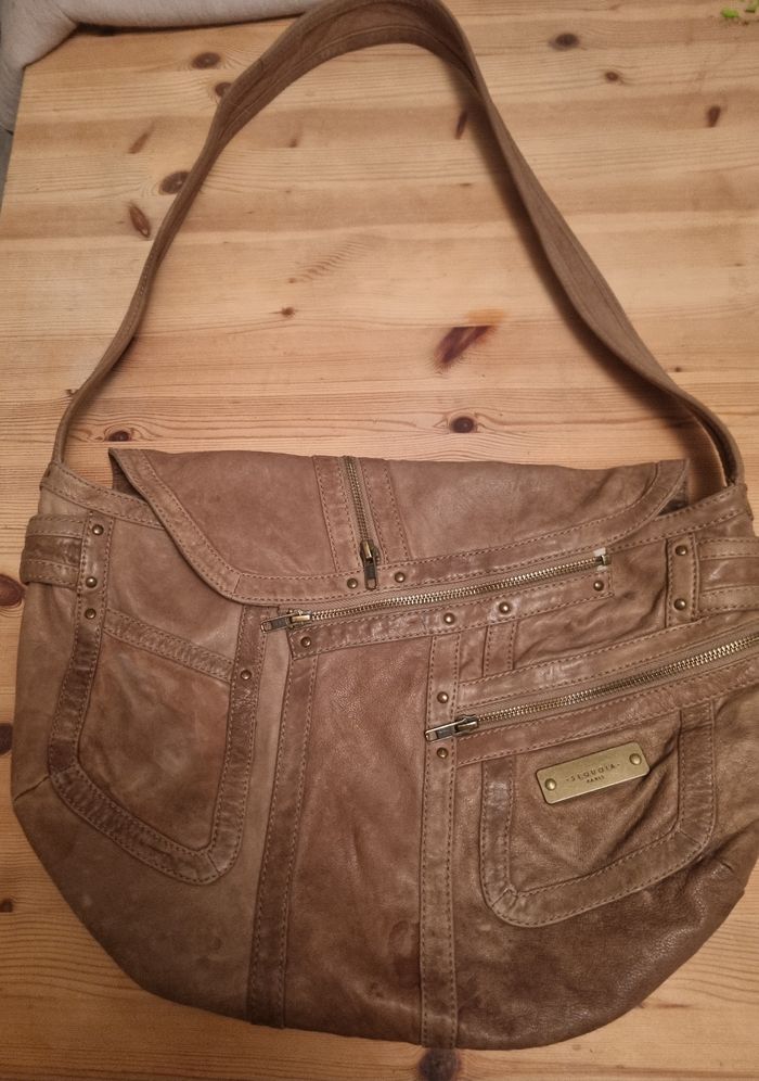 Sac vintage SEQUOIA. 100 % cuir souple, joliment patiné d'origine. Très pratique avec ses multiples pochettes et rangements, il s'ouvre en totalité pour un accès plus facile au contenu. J'ai adoré m'en servir.