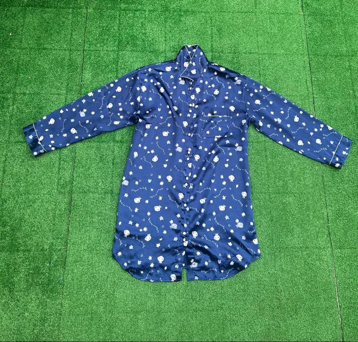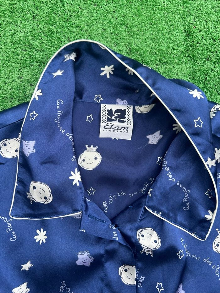 Chemise de nuit longue bleu nuit imprimée personnages, étoiles et texte “Au Royaume des Rêves”, matière satinée agréable au toucher. Coupe ample, manches longues, boutonnière devant et petite poche poitrine. 👕 Marque: Etam Lingerie 📏 Longueur: 90 cm 📏 Largeur: 48 cm 📐 Taille: unique 🎨 Couleur: bleu nuit imprimé 🧶 Matières: 100% polyester 🛍️ N’hésitez pas à faire un lot j’ai beaucoup d’articles en ventes. 📦 Envoi ou remise main propre à Limoges. #chemisedenuit #pyjamafemme #etamlingerie #nuisettechemise #pyjamableu #pyjamaimprimé #pyjamalong #pyjamamanchelongue #pyjamatailleunique #pyjamaconfort #pyjamadoux #pyjamahiver #pyjamafantaisie #pyjamastars #pyjamareves #pyjamafemmebleu #pyjamachemisier #pyjamadeboutonné